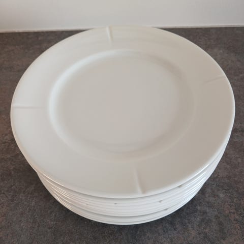 6 x hvide desserttallerknen kr. 30.- pr. stk.