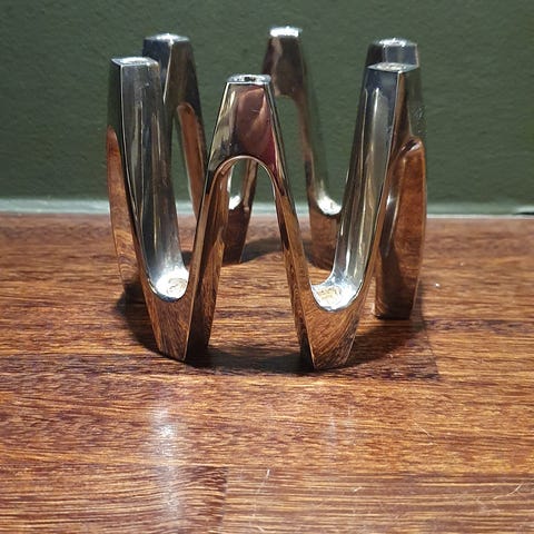 Forsølvet Quistgaard stager, Dansk Design. Stemplet Dansk Design IHQ. Kan godt lide detaljen, med guld kant på toppen. En en flot, iøjefaldende detalje. Smukt, klassisk design til brug med standard stearinlys. Også lækker detalje at toppen kan skrues af og den så kan forvandle sig til vaser!! Ja wow ;) Stemplet IHQ og Danskdesign, Danmark. De har en vis alder, fra 50erne (eller 60erne), så de har været brugt, levet og leveret smukt lys til mange hyggestunder og samtaler :) Og holdt mange buketter. De har patina, men smukke er de! Beredte til at lyse til uendeligt mange fremtidige hygge øjeblikke :) Lyser op og giver hygge, selv når de er slukket! Eller transformeres til vaser. 24 ranke cm høje. #quistgaard #danskdesign #IHQ #stemplet #2for1 #påfleremåder #stearinlys #vase #vaser #indretning #interiør #bodbedre #hygge #smuk #klassiker #design #sølv #serkunmessing #glæde #godttænkt #godtdesign #vintage #gammeltguld