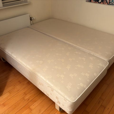 2 enkelte box madrasser i god stand. Skal købes sammen. Benene er aftagelig. Købt tilbage i Jysk i 2020.