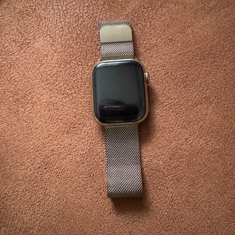 Apple Watch Series 9 Smartwatch med 45mm urkasse i sort rustfrit stål. Uret har en sort original Milanese loop rem. Batteriets maksimale kapacitet er 100%. Original emballage og kvittering medfølger. købt i power marts 2025 så stadig garanti på uret