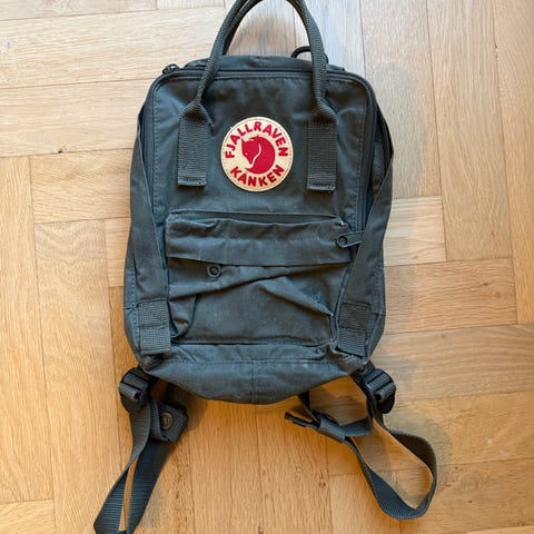 Fjällräven Kånken Mini taske fremstillet i sort stof. Tasken er designet til unisex brug og har en kompakt størrelse, der egner sig til daglig brug og mindre opbevaringsbehov. Den har justerbare skulderremme og et frontlommedesign.