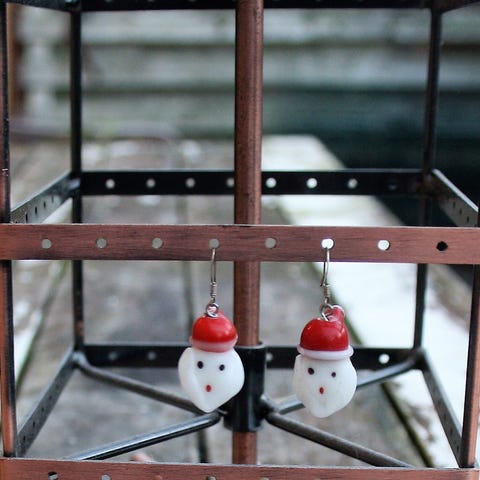 Juleøreringe - håndsyet af små glasperler - grønlænderperler - rocailles
