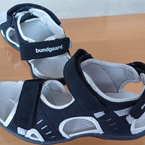 Bundgaard Sandaler Traj str. 31 har følgende egenskaber: elastik lukning, fleksibel gummisål, god pasform, læder detaljer, ensfarvet, sporty, velcrolukning. Bundgaard Sandaler er udført i 100% Læder. Farve: Sort. Nypris 649,95. Naturlige brugsspor, særligt på hælen og prissat derefter.