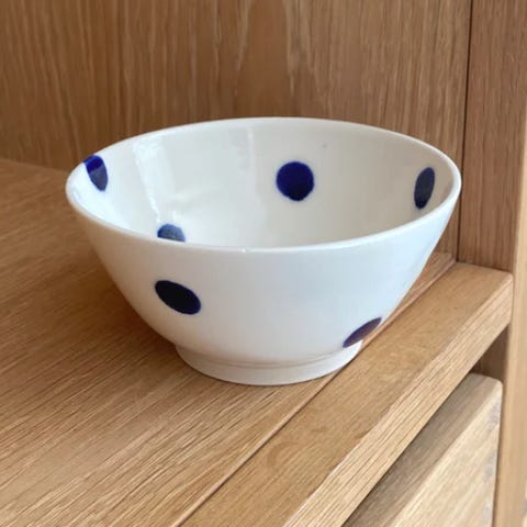 8 tallerkner med en diameter på 28 cm designet af Ellen De Generes for Royal Doulton London. Tåler microovn og opvaskemaskine. Har Ellens signatur LOVE på undersiden. Nyprisen var 136 kr pr styk. DARK BLUE CHEVRON