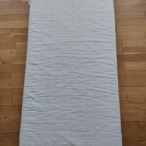 Super fin børnemadras af den type hvor sælgeren i madrasbutikken næsten vil kalde det børnemishandling, hvis man ikke køber denne madras - så ja hvis man vil sit barn det bedste…….😃 mål: 120*60*10cm - mærke Aerosleep. Fra røg- og dyrefrit hjem.