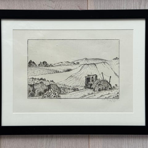 b: 41. h: 30.. Nyindrammet i glas og 50 x 40 sort ramme.