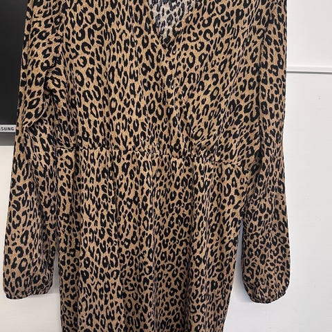 Lindex Hverdagskjole i størrelse M med brun leopardmønster. Kjolen er designet for kvinner og egnet til hverdagsbruk.