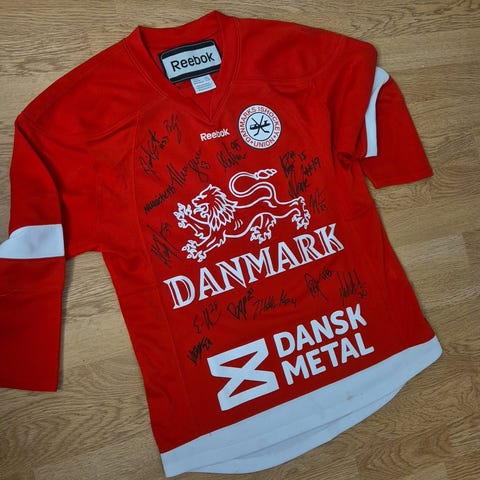 Landsholds Ishockeytrøje med Danmark design, brugt til ishockey.