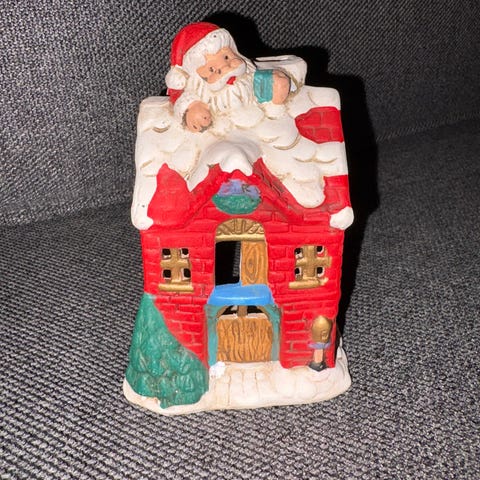 Sødt lille hus i keramik hvor taget kan løftes af og så er der et lys inden i. Huset måler ca. 7 cm med tag på.