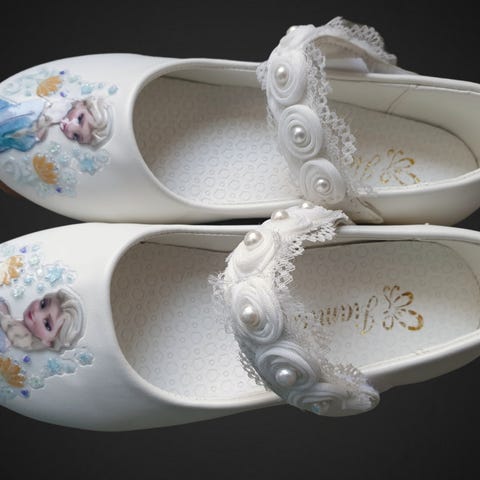 Elsa sko i plastic med hæl. Størrelse fremgår ikke. Vi gætter på ca. str. 28.