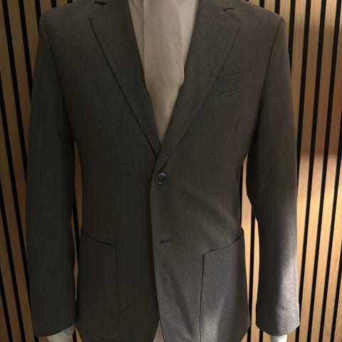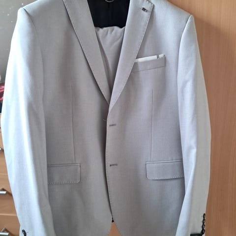 Zara herre jakkesæt i sort, størrelse 46. Det er brugt én gang, men det er for småt (fejlkøb). Der er ingen brugsspor. Jakken har to knapper foran og klassisk revers. Et pænt og klassisk sæt.