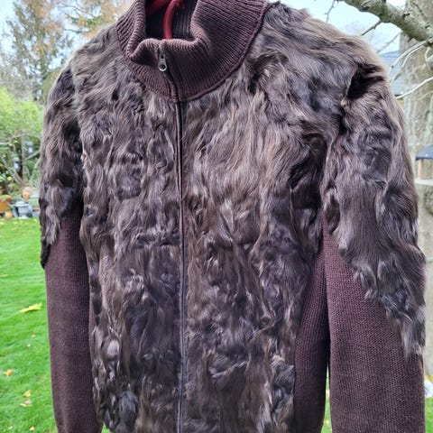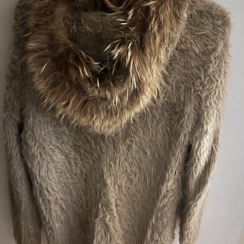 Cardigan / jakke i feminint snit, med uld og kant af kaninpels