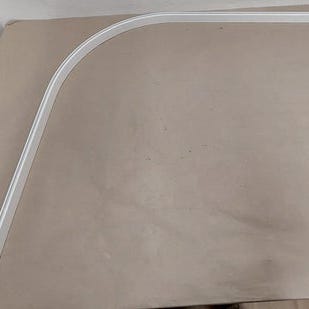 Van Der P badeforhængsstang med en diameter på 82 cm, fremstillet i rustfrit stål. Designet til montering i badeværelse, egnet til ophængning af badeforhæng.