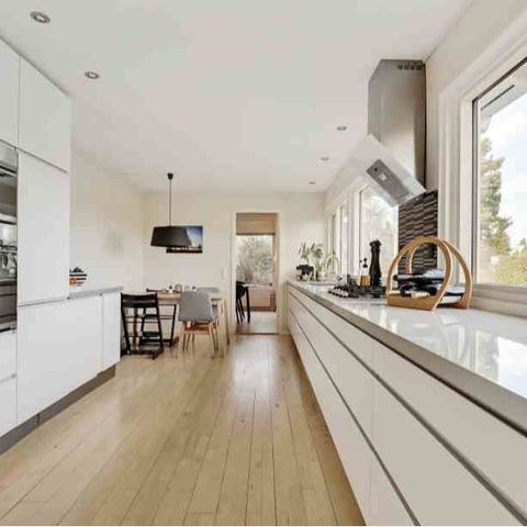 Inkluderet er hvidevarer fra Whirlpool: en mikrobølgeovn, et køleskab, et komfur (der blot kræver en ny sikring) og en opvaskemaskine. Alt fungerer fint.