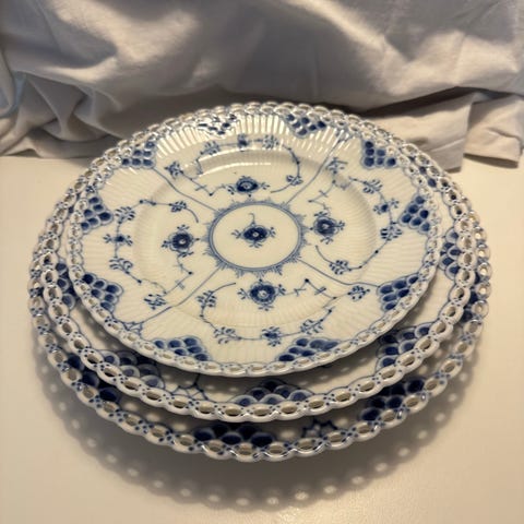 4 stk. Royal Copenhagen Blå Musselmalet Riflet frokosttallerkener.