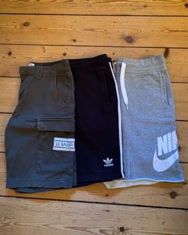 Fine hoodies, brugt men uden huller eller anden slid. Bukser ligeledes fine. Shorts nye. Farverne ser famlet ud på billederne men det er de ikke.