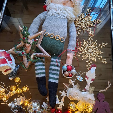 Masser af kugler i flere størrelser, ænder, luftballoner, lyserøde juletræer og andet blandet