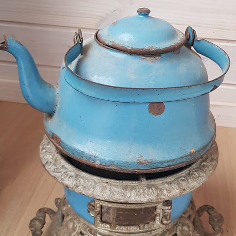 Antik Madam Blå primus med væger – original charme fra en svunden tid