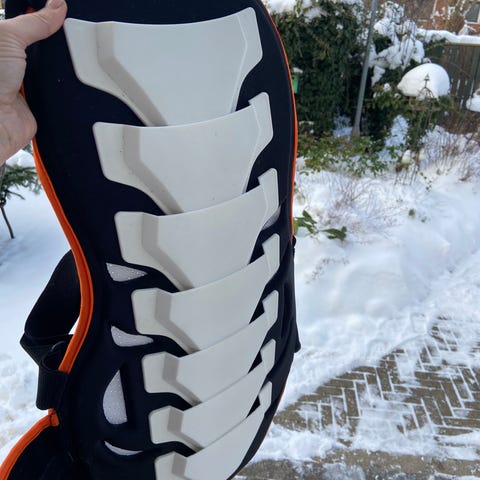 Rygskjold, brugt til ski, men er angivet som værende til cross / mtb . Bredt elastikbælte, justerbare skulder stropper
