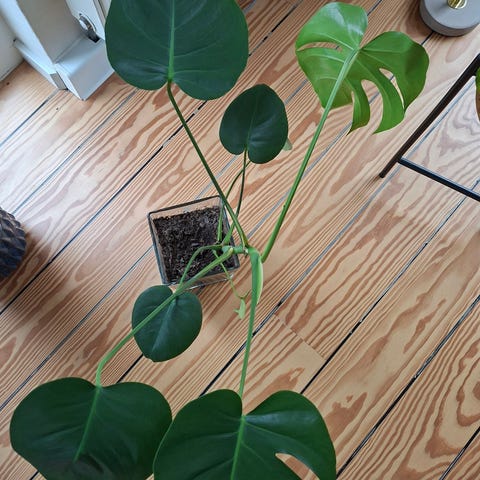 Stor Monstera stueplante med potte og underskål. Står i Skærbæk 7000