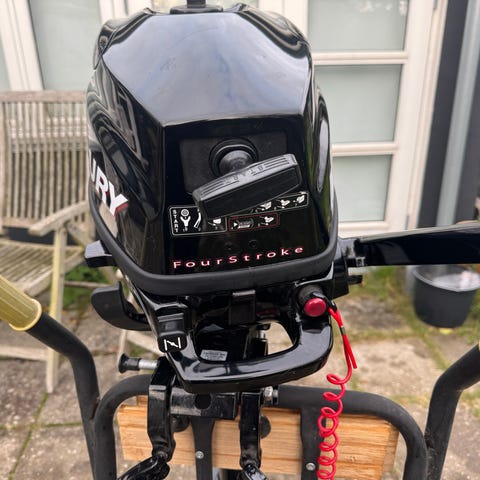 Motoren starter og kører. Video af kørende motor kan sendes. Årgang 2008. Ledningsnet medfølger til start af motoren - se billede. Der er trim på motor.