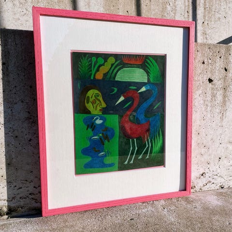 Viktor Henderson originalt værk, akvarel og oliekridt på papir (vær opmærksom på, at papiret buler i rammen), lysmål 55x37 cm, usign. Professionelt indrammet.