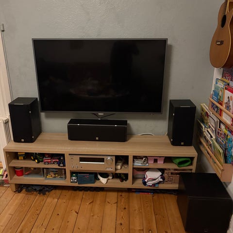 Alt er intakt og lyder super godt. DALI Vokal har et beskadiget hjørne jf. billede.