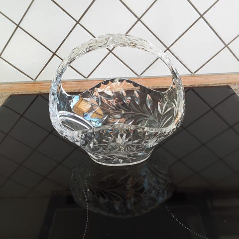 Glas, Krystal skål, Smuk lille krystalskål, velegnet til påskeæg , slik, eller syltetøj i julen, uden skår, H 6,5 L 15,5 B 10cm