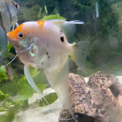 Akvariefisk med sølvfarvet krop og skællet udseende. Mellemstor størrelse, velegnet til ferskvandsakvarier. Fiskens form og farve gør den egnet til dekoration i hjemmeakvarier.