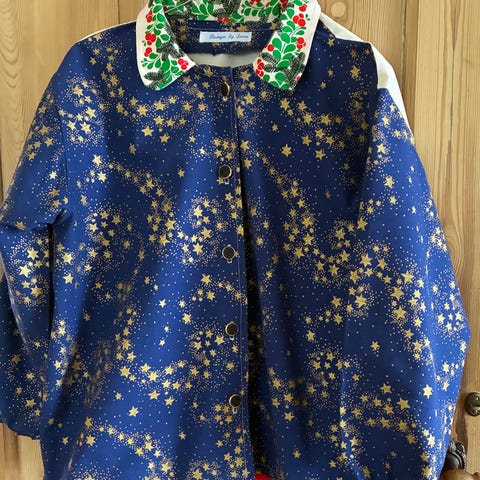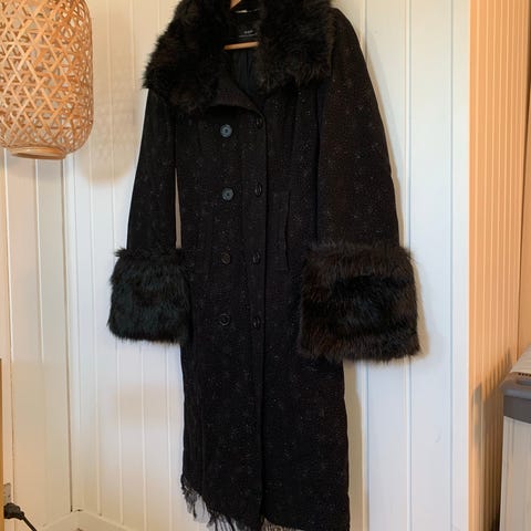 Julefrakke/ rød ulden frakke med silkefoer og lækre detaljer. A facon.