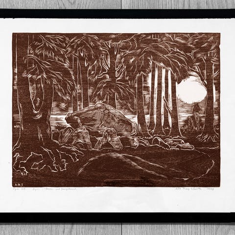 Signeret med blyant i 1949. Brunlig.