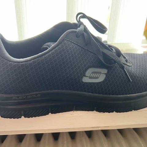 Skechers Deluxe D’LUX sko i størrelse 40. Skoene er sorte med lyserøde detaljer. Skoene er lidt store i størrelsen, vil sige at de er tættere på 40.5-41