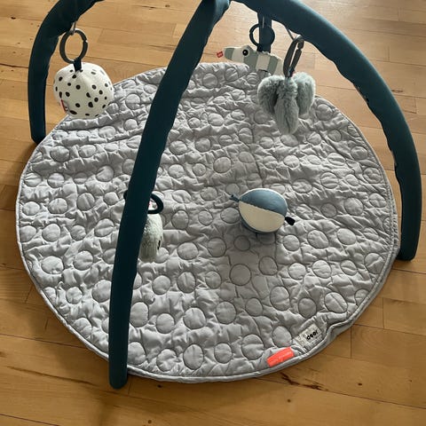 Andet legetøj, som fungere godt på aktivitetstæppet medfølger, samt tæppe, som det legetøj ligger på.