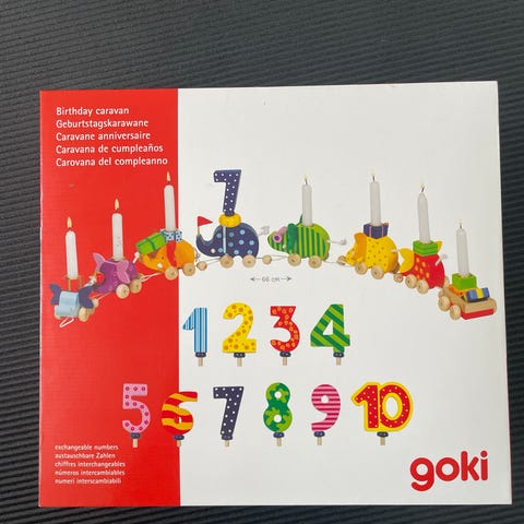 Fødselsdagskaravane med dyr - med tal og holdere til lys.