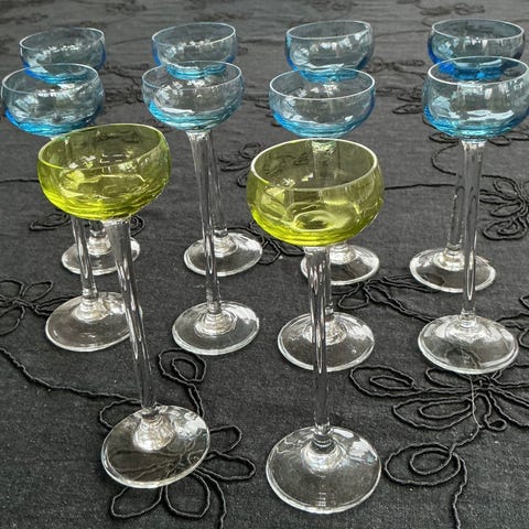 Håndlavede farvede snapseglas