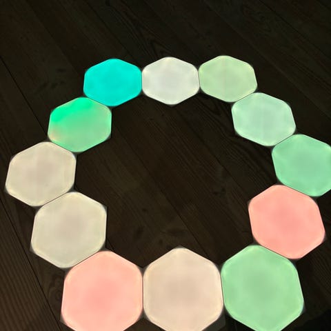 Fine væglamper, der er brugt i 1,5 års tid. En lille revne på en af lamperne (ikke noget man ser når tændt). Alle dele til ophæng følger med, selvom der på nogle sidder lidt tape på.Fra beskrivelsen: Skab lyskunst med 16 millioner farver med dette Nanoleaf Shapes Hexagons Starter sæt (9-pak). Det giver endeløse muligheder for at skabe et lysende mesterværk takket være multi-touch kontrol, musiksynkronisering og Nanoleaf appen. 1800 fra ny