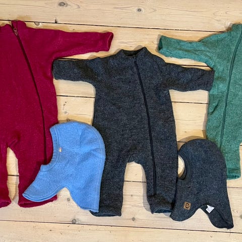 Intakt dragt til baby, af mærket "Mikk-line" str. 84. Pragtisk åbning med dobbelt lynlås og lukning ved bryst/hals.