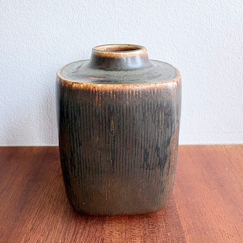 Super fin kvadratisk skål af Valdemar Petersen for Bing & Grøndahl i en skøn blanding af brungrønne nuancer i glasuren og smukt geometrisk relief.