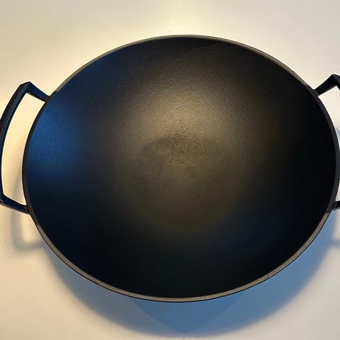 Le Creuset Wokpande med låg i sort støbejern, diameter 32cm.