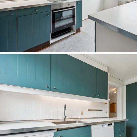 Da jeg skal have nyt køkken, sælger jeg mit nuværende. Det er i fin stand, men har også tydelige brugstegn. Se billeder. Bordpladen har et mærke, men hvis man sliber bordpladen og behandler den, kan den blive rigtig flot igen. Bordpladen er massiv træ, og der er også en sort stemplade. Ovn og opvaskemaskine kan medfølge, hvis man er interesseret. Køkkenet tages ned fredag den 6.2. og lørdag den 7.2. Såfremt man selv vil tage køkkenet ned, er det også en mulighed. Skriv gerne for mål eller andre spørgsmål.