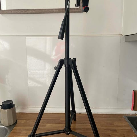 Konica KN-1 Tripod stativ i brun metal. Stativet har justerbare ben og en håndtag til betjening. Udstyret med en krog under midteraksen for ekstra stabilitet. Velegnet til fotografering og videoptagelser, hvor stabilitet er nødvendig.