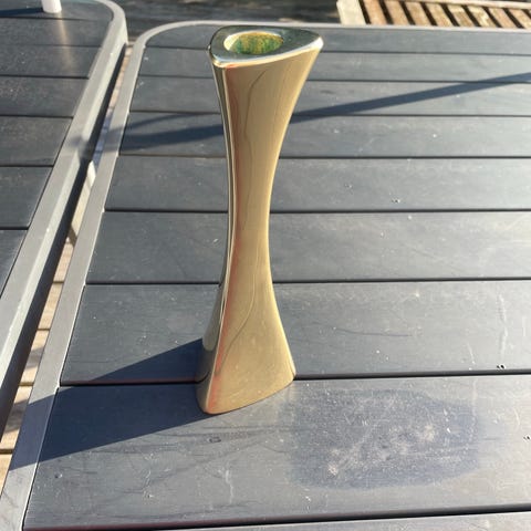 Højden er ca. 27 cm, og bunddiameteren er 8 cm. Lampen er stemplet på bunden med "Ilse D. Ammonsen" og "handmade in DENMARK".