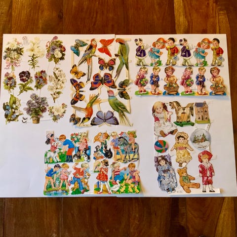 Mappe med massere af glansbilleder. Samt 3 ark med julemænd i ubrugt stand og lomme med løse glansbilleder. Både nyere og gamle. Bl.a. Disney. Mappen har brugstegn, men glansbilleder er holdt i pæn stand.