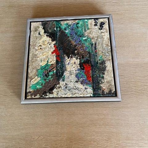 Maleri med abstrakt motiv i brunlige og hvide nuancer. Inkluderer en ramme i træ. Kan anvendes som vægdekoration i forskellige rum.