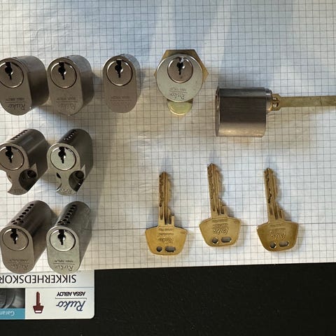 Låsecylinderbrugt i midlertidig lejebolig (ca. 12 mdr.). Sælges til halv pris. En god sikkerhed og - visse steder - et forsikringskrav.