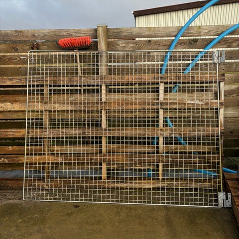 To stk velholdte og gedigne panelhegnslåger: H 200 cm x B 100 cm. Den gående del kan monteres i såvel højre og venstre side. To stk. sælges samlet for i alt kun 1000 kr. (Nypris ca. 1800 pr. stk).