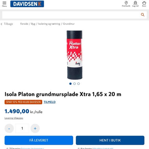 Laveste nypris for 20m x 100 cm er 524,00 kr.