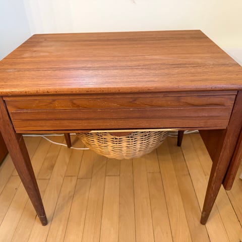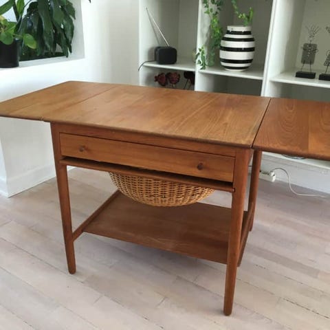 Inspireret af Wegeners sybord med smukt, flettet og intakt kurv der kan trækkes ud under bordet.