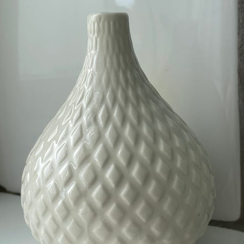 “Dropvasen er en kollektion af enkle og skulpturelle vaser inspireret af den skandinaviske designtradition. Smuk og elegant lille glasvase. Perfekt til at fremhæve en enkelt lille blomst - forårsblomsten, vintergækken eller den knækkede fra buketten. Alle vaser er unikke.”