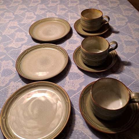 2 triosæt fra serien Rune, den ene kop med 2 små nag.